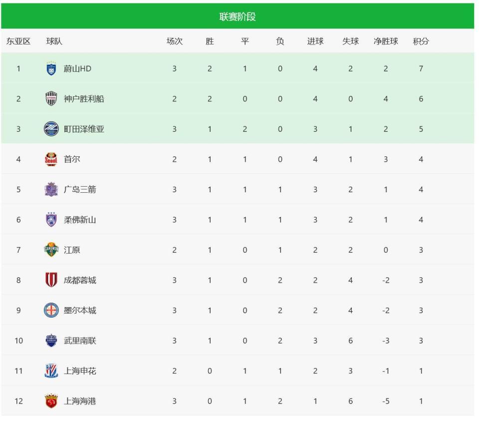 亚冠积分榜:上海海港1平2负排名垫底,中超两强皆主场完败